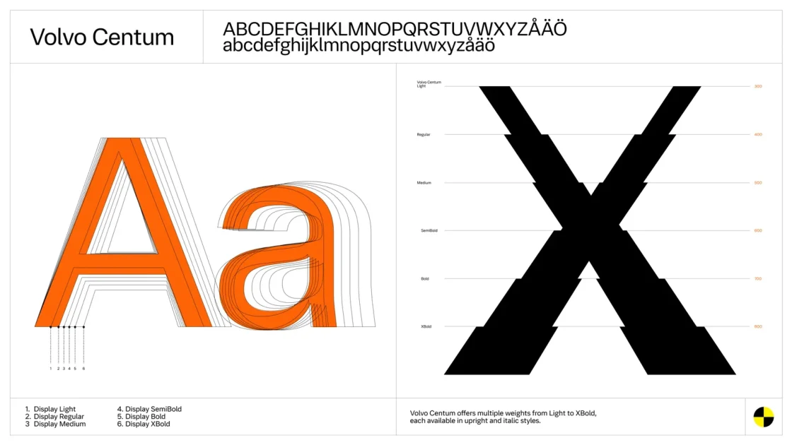 Volvo Centum is a custom typeface developed with Dalton Maag. It replaces standard fonts used on screens inside the car.